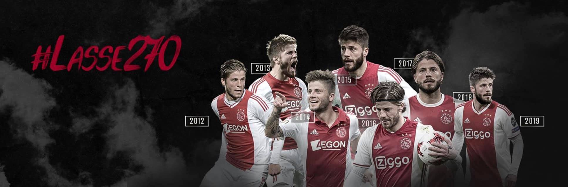 마침내 MF 라세 쇠네가 아약스 역사의 한 페이지를 장식합니다. 오늘 새벽, 페예노르트와의 KNVB컵 준결승전(3:0 승)에 선발 출전하면서 270번째 출장을 기록해 종전 아약스 외국인 최다 출전 기록이었던 MF 쇠렌 레르비의 269경기를 넘어섰습니다. 같은 덴마크 출신 선배의 기록을 넘어서 감회가 더할 것 같네요.