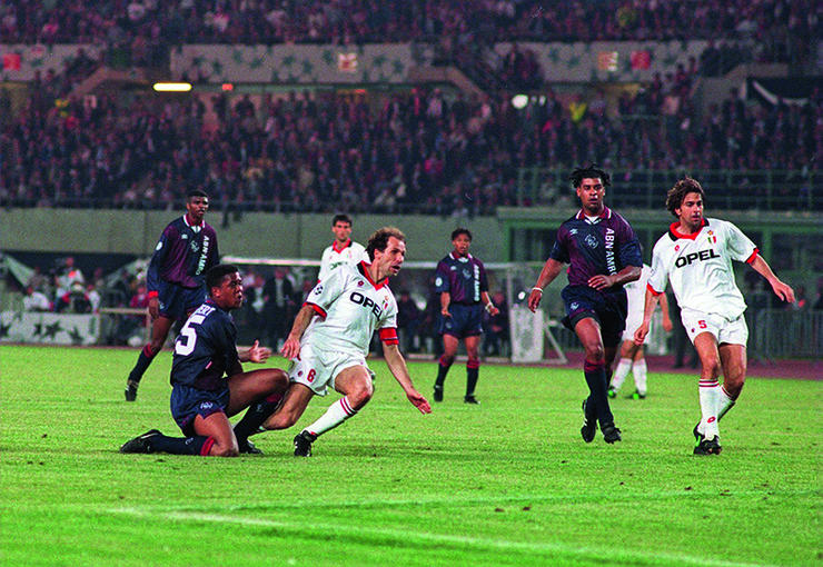 당시 밀란을 이끌던 파비오 카펠로는 조별리그에서 2번 패배한 아약스를 분석해 대응전술을 마련했다. 드사이를 리트마넨에게 붙이고 포워드인 마사로는 프랑크 데 부르가 아니라 라이지허에게 공이가도록 압박했다. 전반 45분간 밀란의 전술은 완벽하게 들어맞았고 아약스는 괴로워했다.