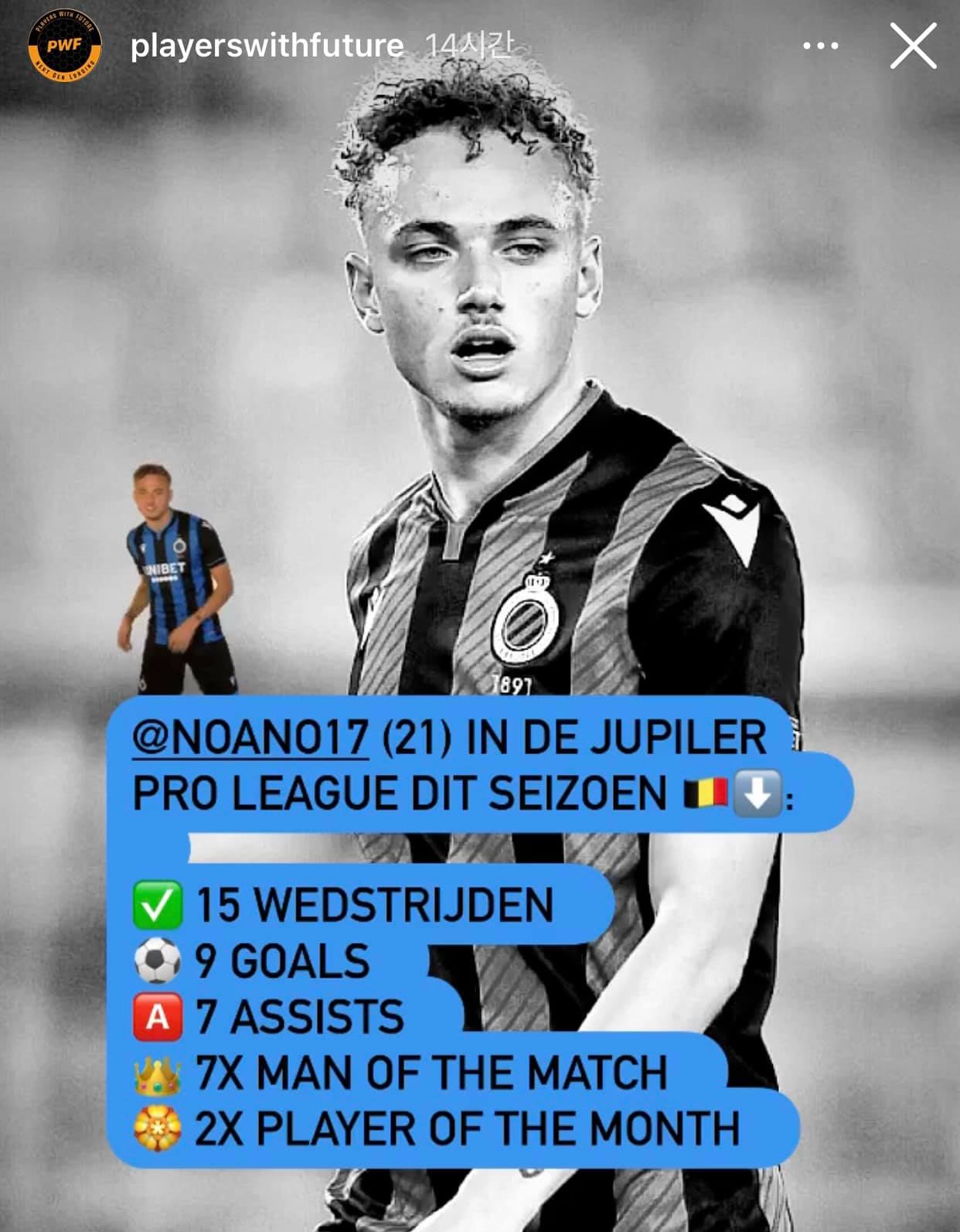 벨기에로 건너가자마자 리그 최고의 선수로 성장했습니다. 페예노르트 유스를 차고 아약스로 건너올 때도, 용아약스에서 빠르게 핵심 선수로 자리 잡을 때도, 프로 데뷔전에서 해트트릭할 때도 심상치 않은 녀석이라고 생각했는데 역시 ‘난놈’이었네요.