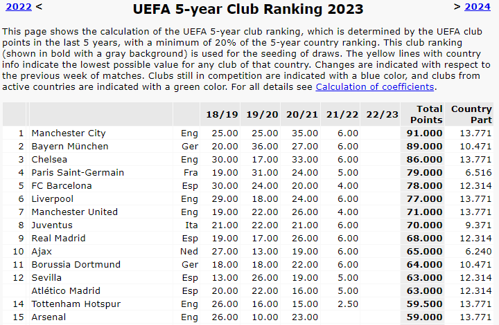 그리고 도르트문트, 세비야, AT마드리드, 토트넘, 아스널 등을 아래에 두고 있다. 소위 말하는 대형 클럽들과 어깨를 나란히 했다는 뜻. 클래스.