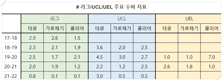 # 시즌별 UCL 볼 경합 승리 지표(전체/그라운드/공중 순)