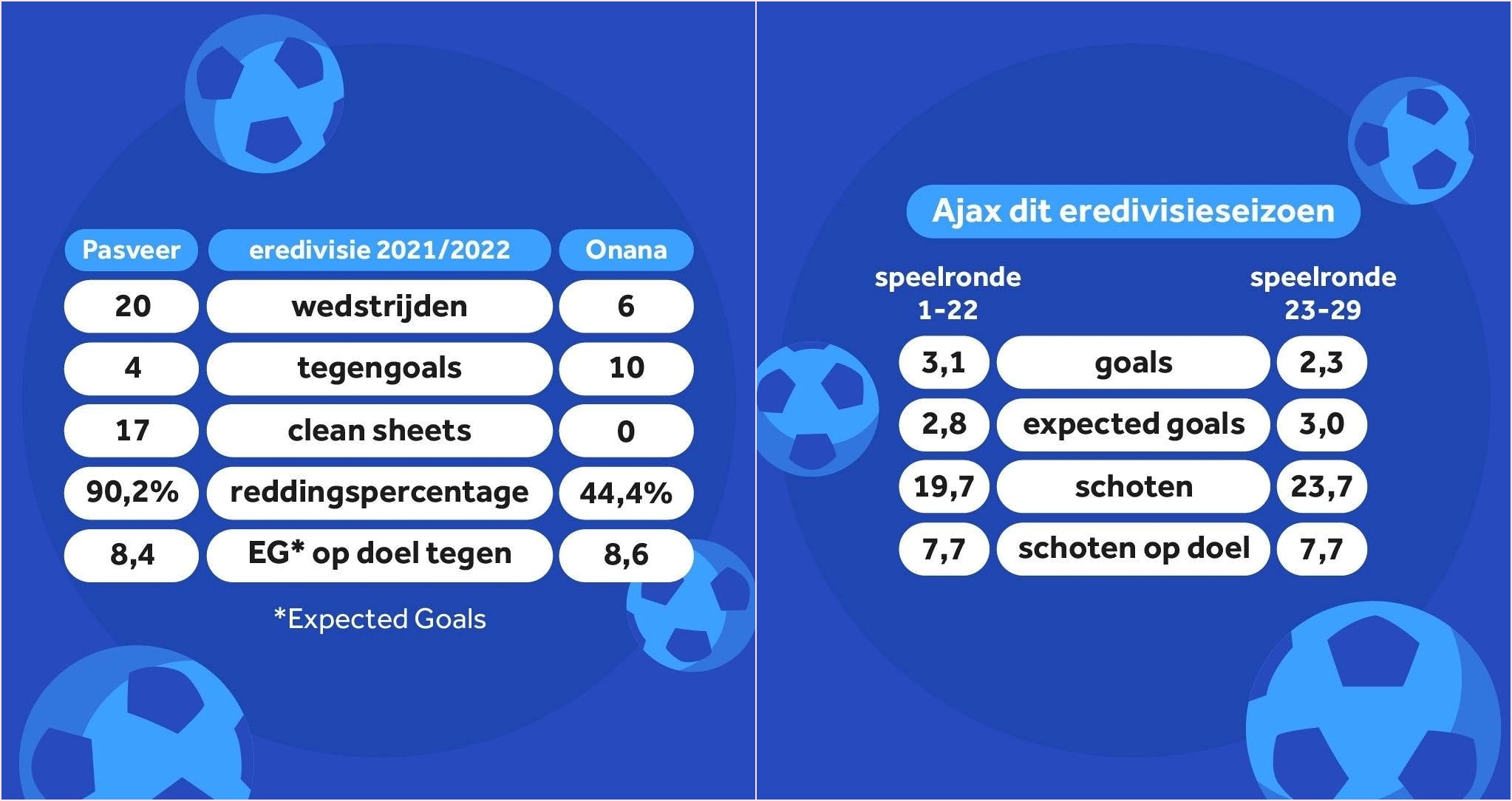 이 또한 큰 차이. xG와 평균 슈팅 수가 늘었는데 득점력이 감소한 것은 공격진의 컨디션 저하로 이야기할 수 있다. 자세하게 들어가면 1. 안토니의 부상, 2. 베르하이스의 포지션 이동과 클라센의 투입으로 인한 2선 조합의 변화, 3. 타디치와 알레의 부진 등을 논할 수 있겠지. 그럼에도 76~90분대 득실점 기록이 23득점 4실점으로 PSV(17득점 8실점), 페예노르트(16득점 4실점) 등 라이벌들과 큰 차이를 보이는 중. 그만큼 종반에 강한 집중력을 보여주고 있다.